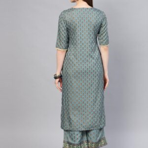 Grey Cotton Block Printed Straight Kurta With Grey Cotton Block Print Palazzo With Both Side Pocket